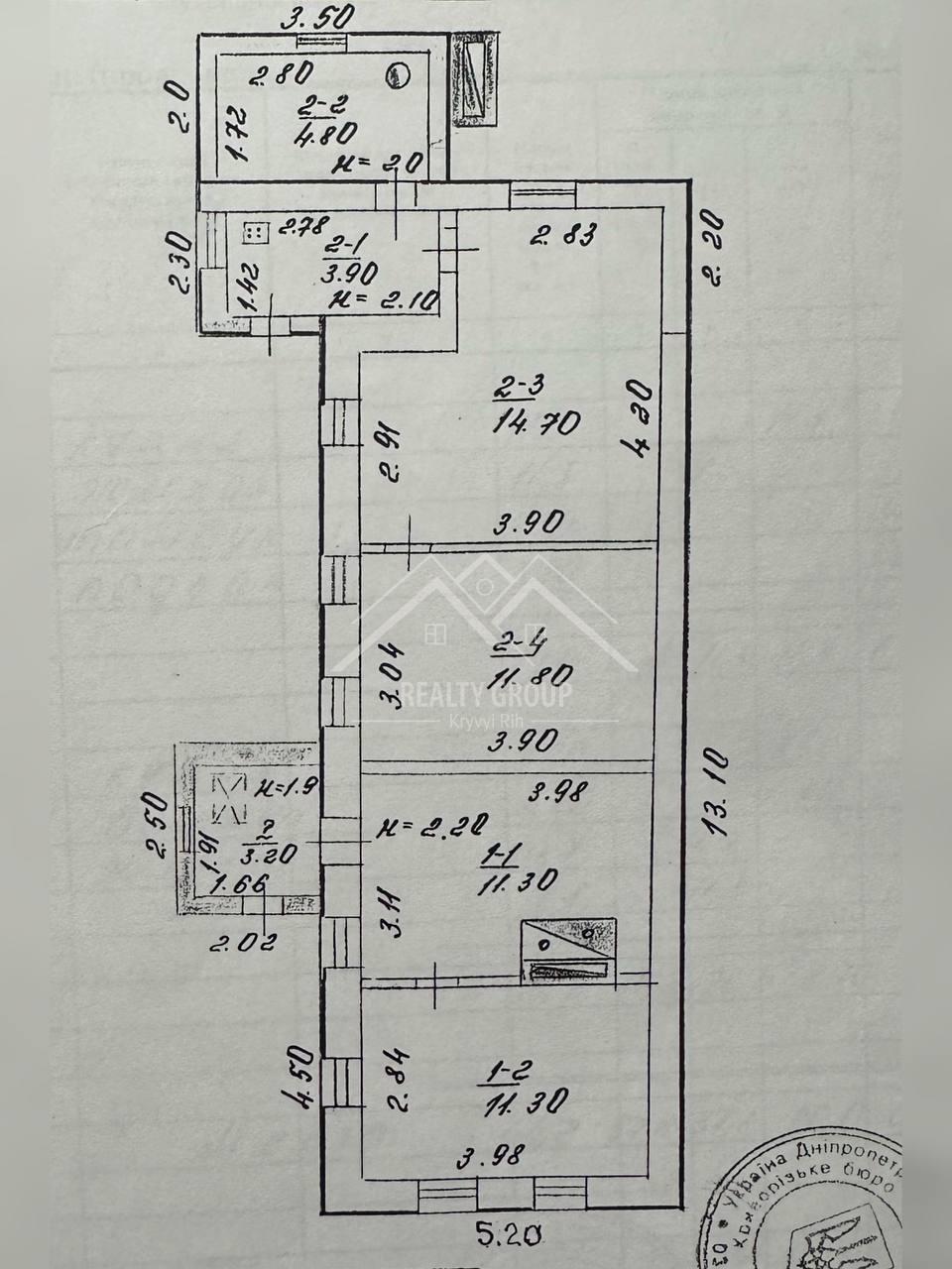 Будинок знаходиться по вулиці Мерецкова, загальна площа 64 м² (житлова – 37 м², кухня – 15 м²).