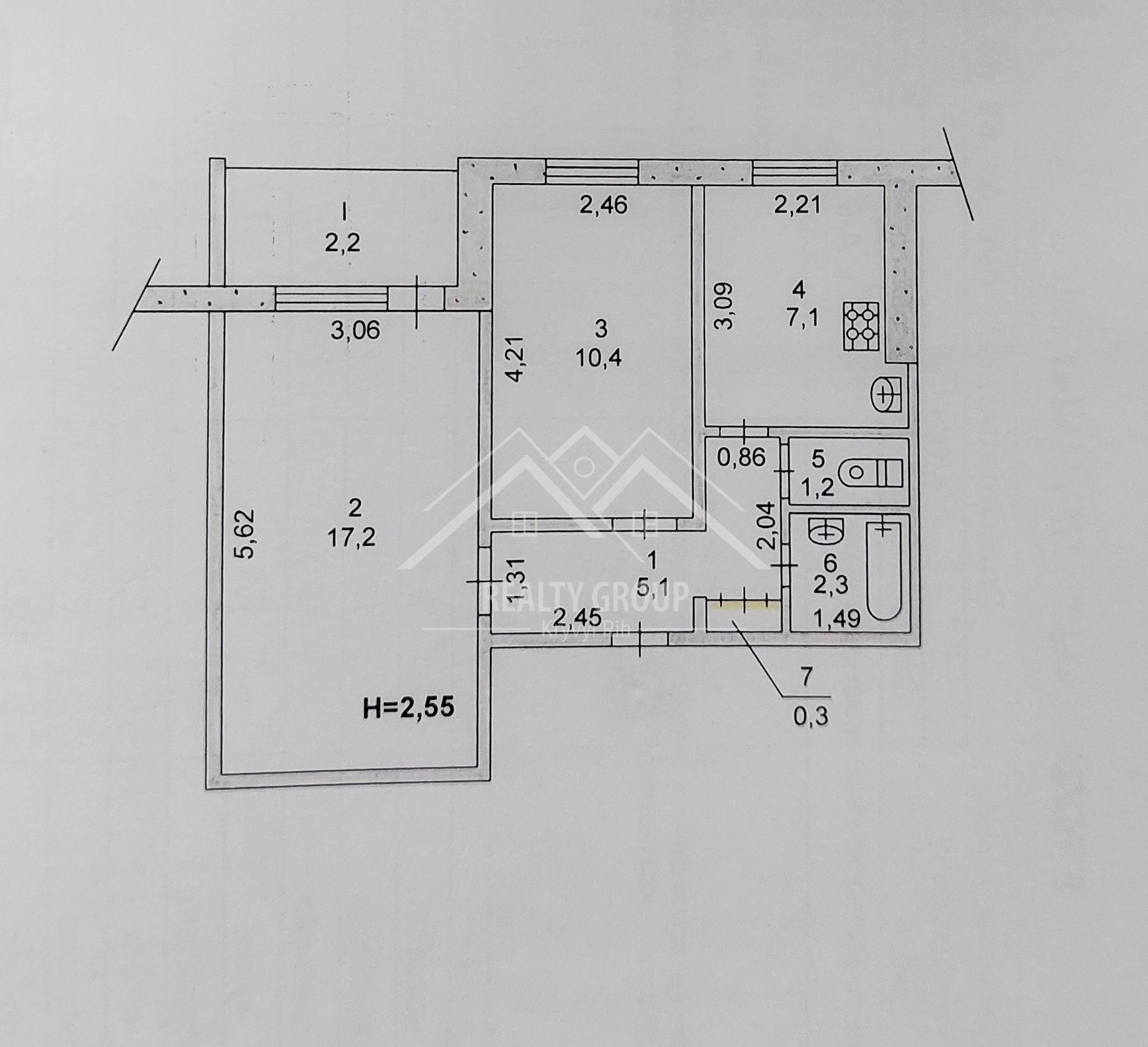 - Площа кухні 7 м2