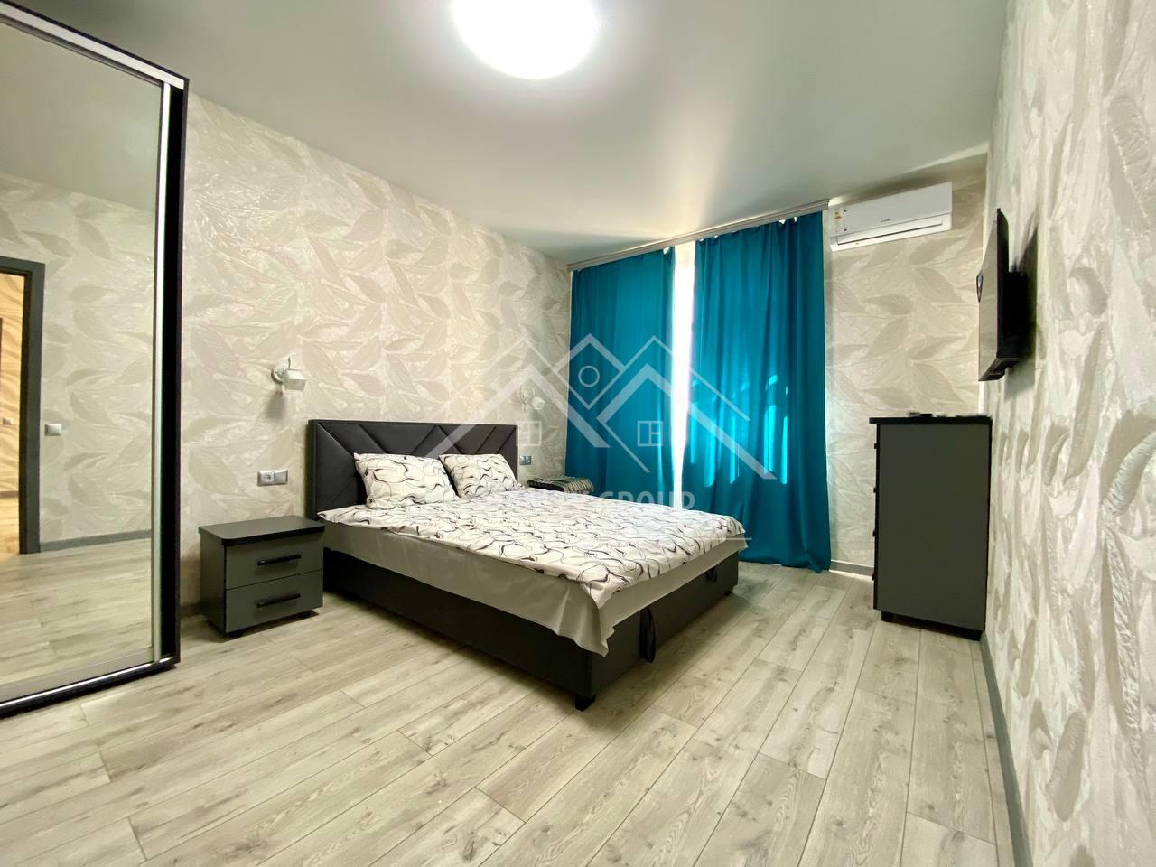 Житло укомплектоване меблями та технікою для комфортного проживання – зручне двоспальне ліжко, шафа-купе для зберігання речей, у вітальні диван (розкладається), стильний кухонний гарнітур та обідня зона. Техніка: два кондиціонери, два телевізори, wi-fi, плита, духова шафа, холодильник, мікрохвильова піч, електрочайник, пральна машина. Стильна ванна кімната з великою кутовою ванною і душовою кабіною.