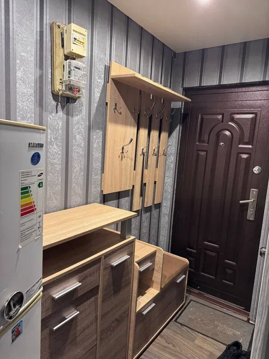 Квартира має зручне планування: світла вітальня з диваном та телевізором, окрема спальня з ліжком і місткою шафою, компактна кухня з необхідними меблями та технікою (плита, мийка, робоча зона). Санвузол підключений до комунікацій, встановлена газова плита. Інтер’єр виконаний у нейтральних тонах, встановлені металопластикові вікна, є балкон. Квартира тепла та доглянута.