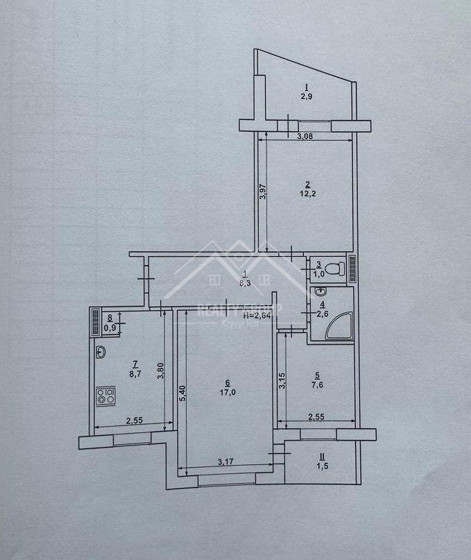 - Площа кухні 8.7 м2
