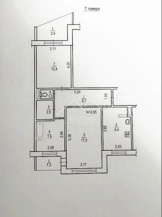 Квартира розташована на 7-му поверсі 9-поверхового будинку.