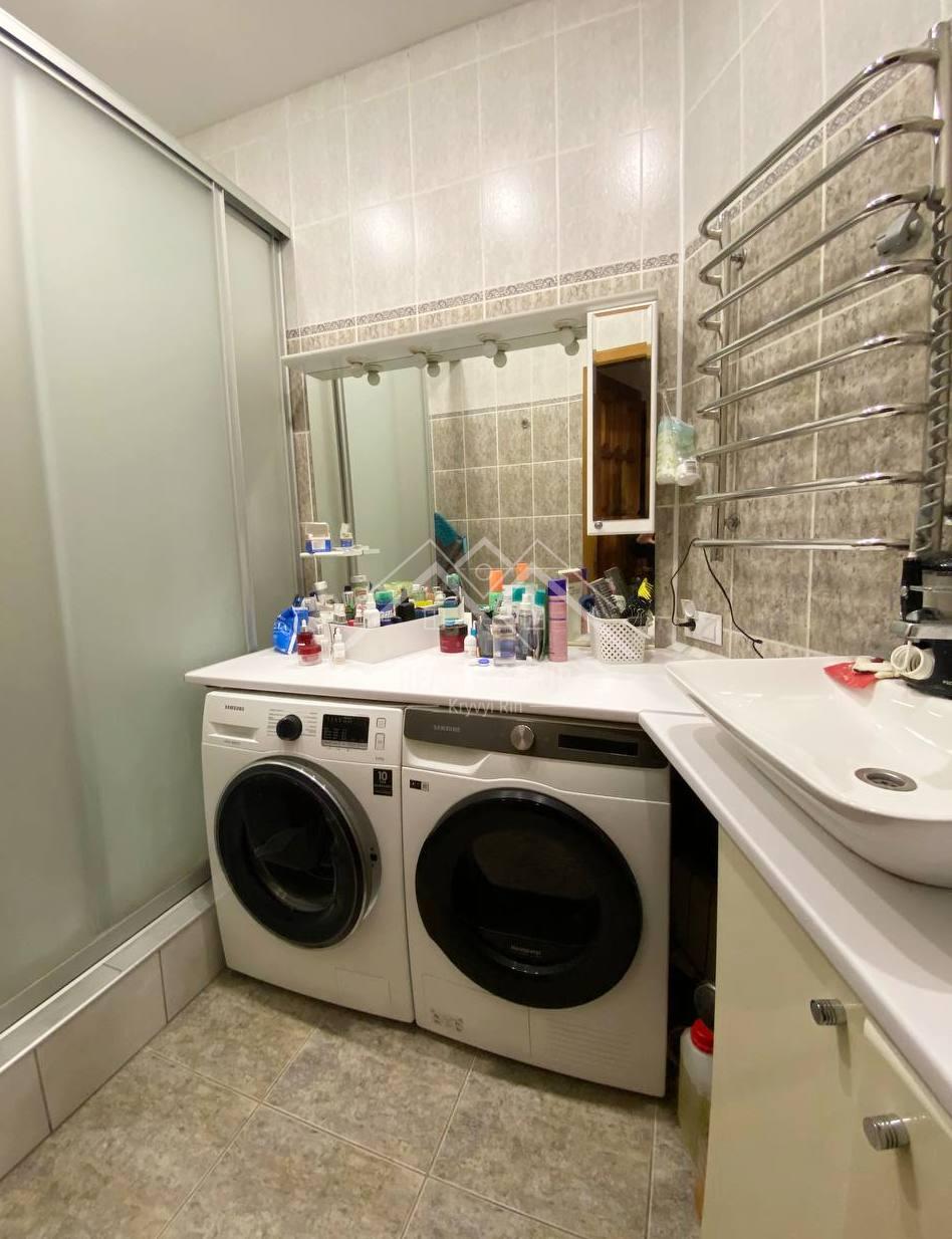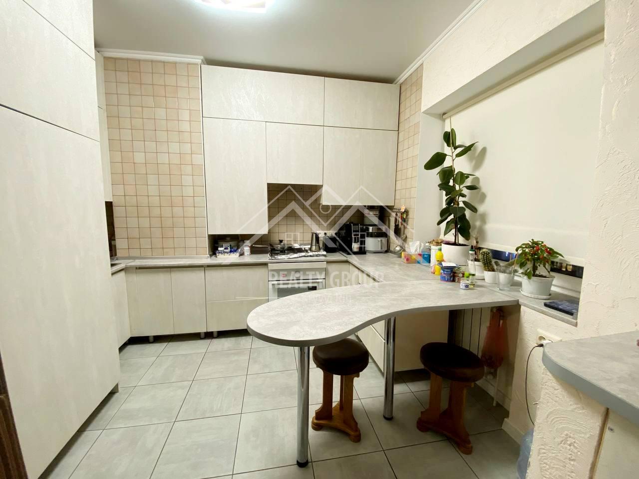 Велика кухня затишна та функціональна, повністю укомплектована меблями та побутовою технікою. Встановлено автономне опалення, завдяки чому квартира економічна та незалежна від центральних систем. Санвузол роздільний: у туалетній кімнаті встановлений унітаз та біде, простора ванна кімната обладнана душовою.