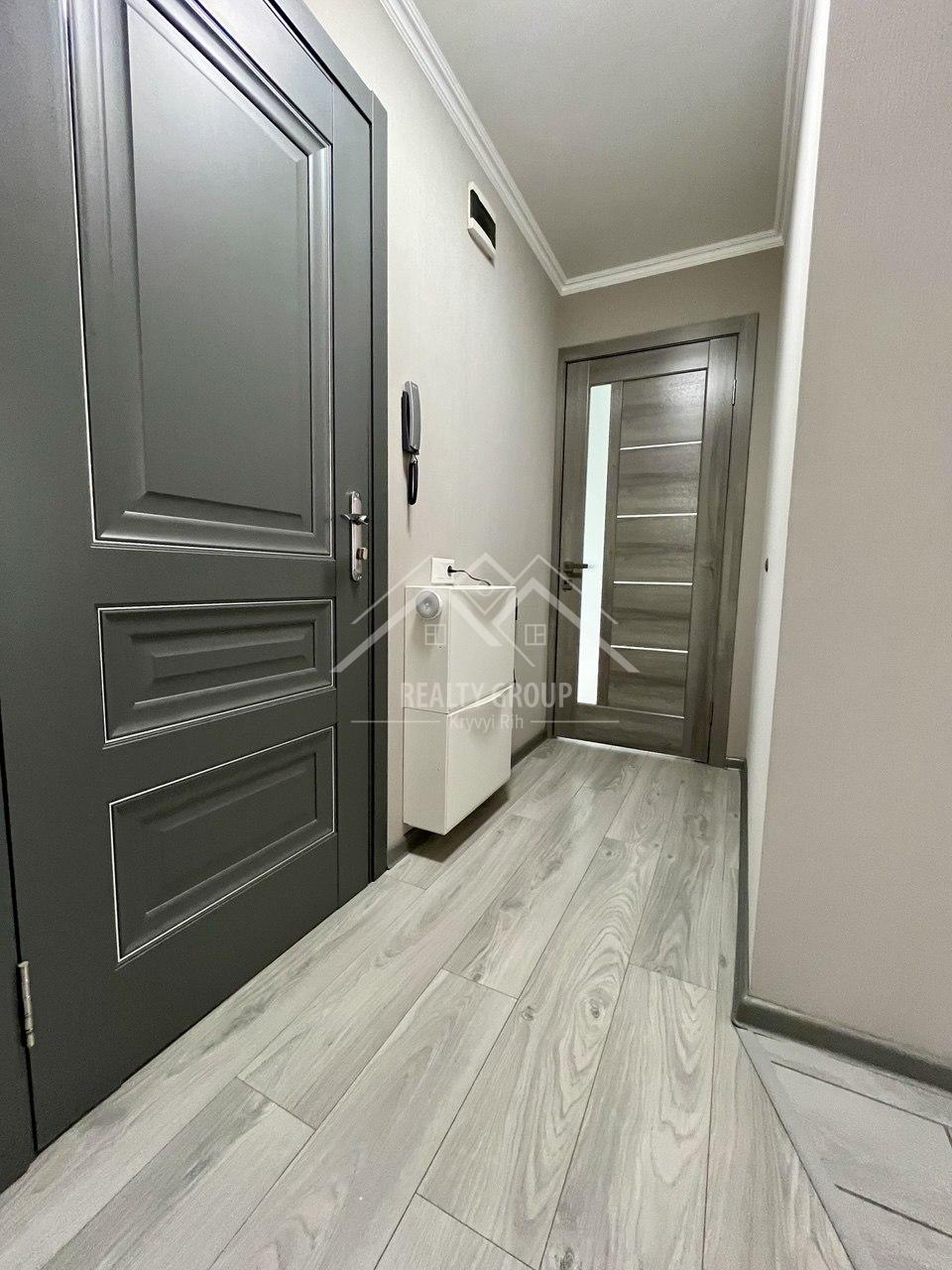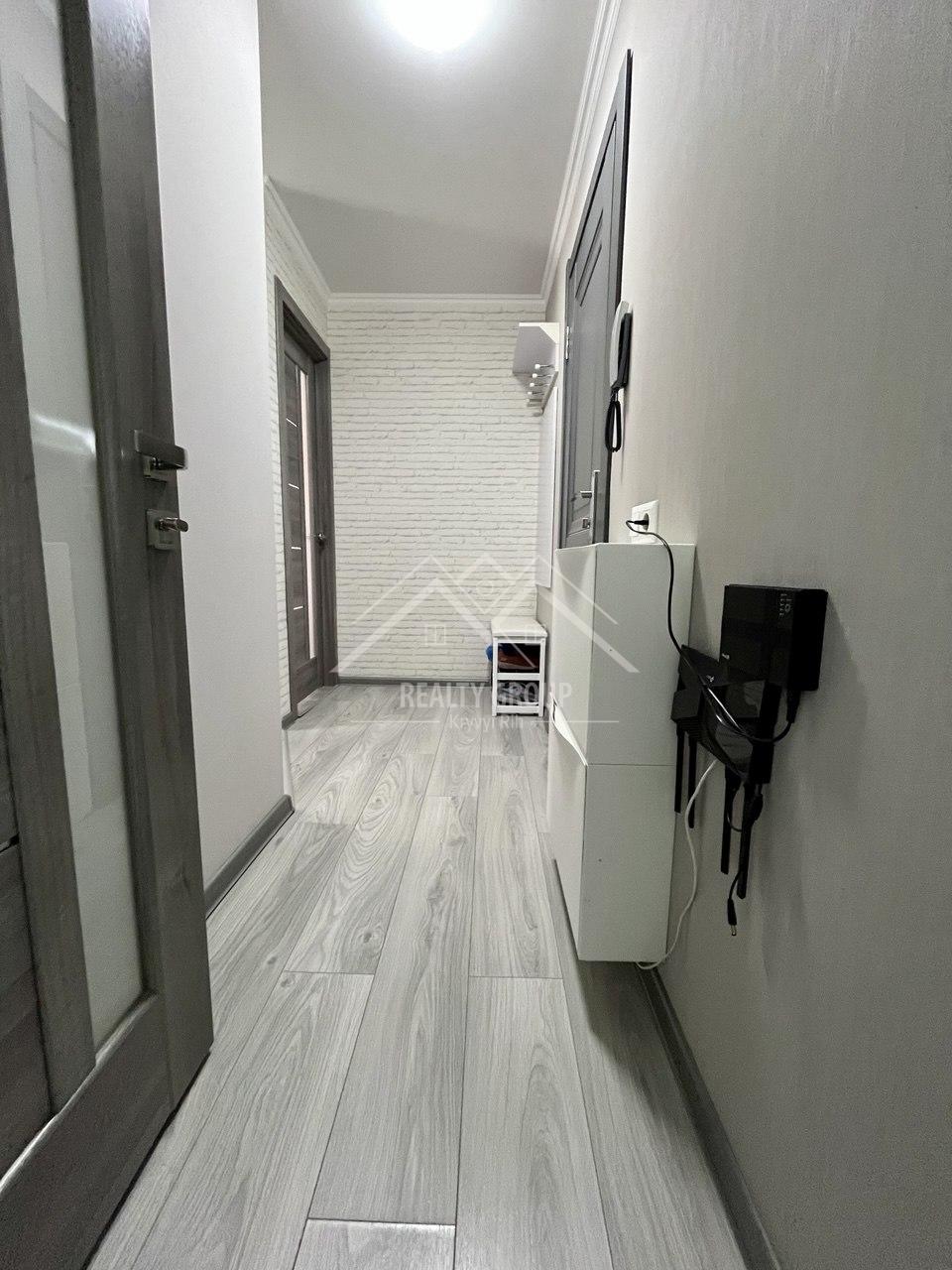 В квартирі сучасний та свіжий ремонт 2021 року. На підлозі ламінат, кухня та ванна кімната – плитка з теплою підлогою. В квартирі повністю замінена сантехніка та проводка.  Якісні подвійні двері гарантують безпеку вам та вашим близьким. Вікна металопластикові, обтягнуті бронеплівкою, що дуже важливо в наш неспокійний час. При продажі в квартирі залишається все необхідне для комфортного проживання або здачі квартири в оренду:  сучасна, ергономомічна вбудована кухня з посудомийною машинкою. Із великої побутової техніки залишають також холодильник та пральну машинку. Залишають також всі необхідні меблі: ліжко, комод, кухонний стіл та стільці.