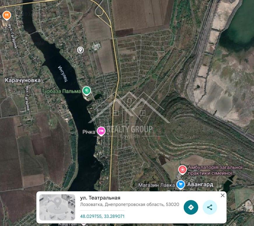 • Локація: село Лозуватка, вул.Театральна, 16 км від Кривого Рогу – зручно та швидко дістатися.