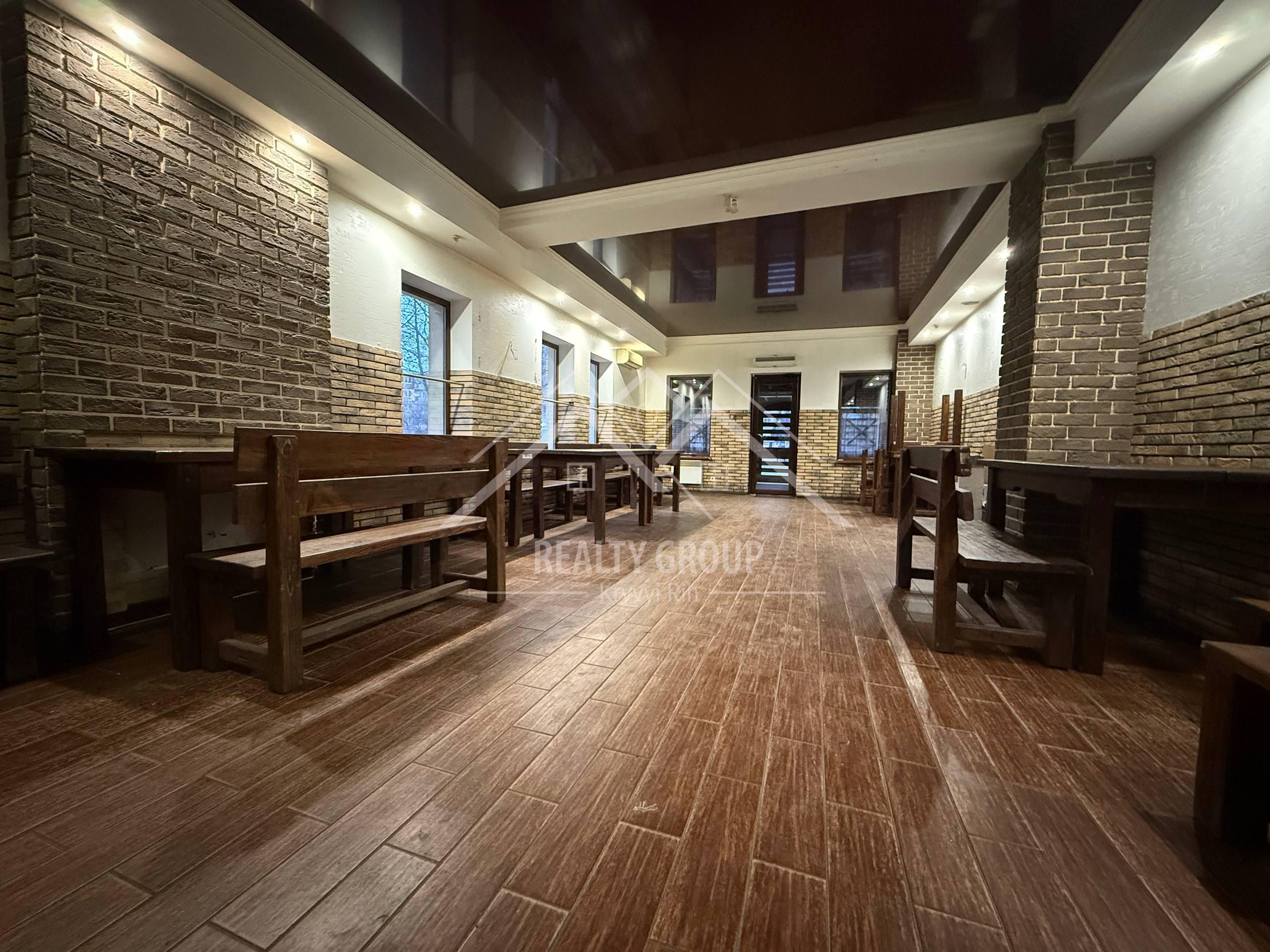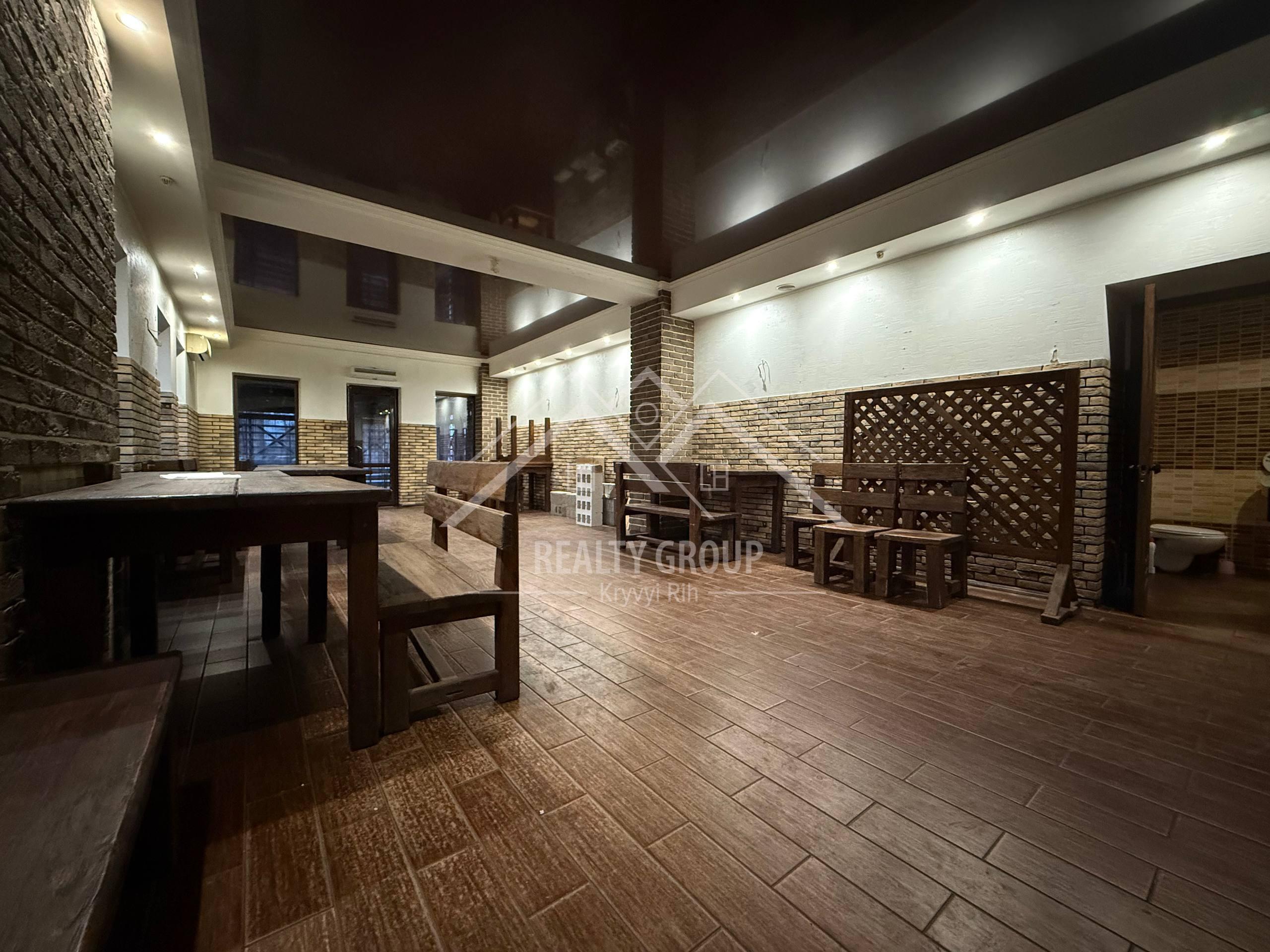 Характеристики приміщення: загальна площа — 130 м², окремий основний зал, обладнана кухня, санвузол, простора літня тераса.